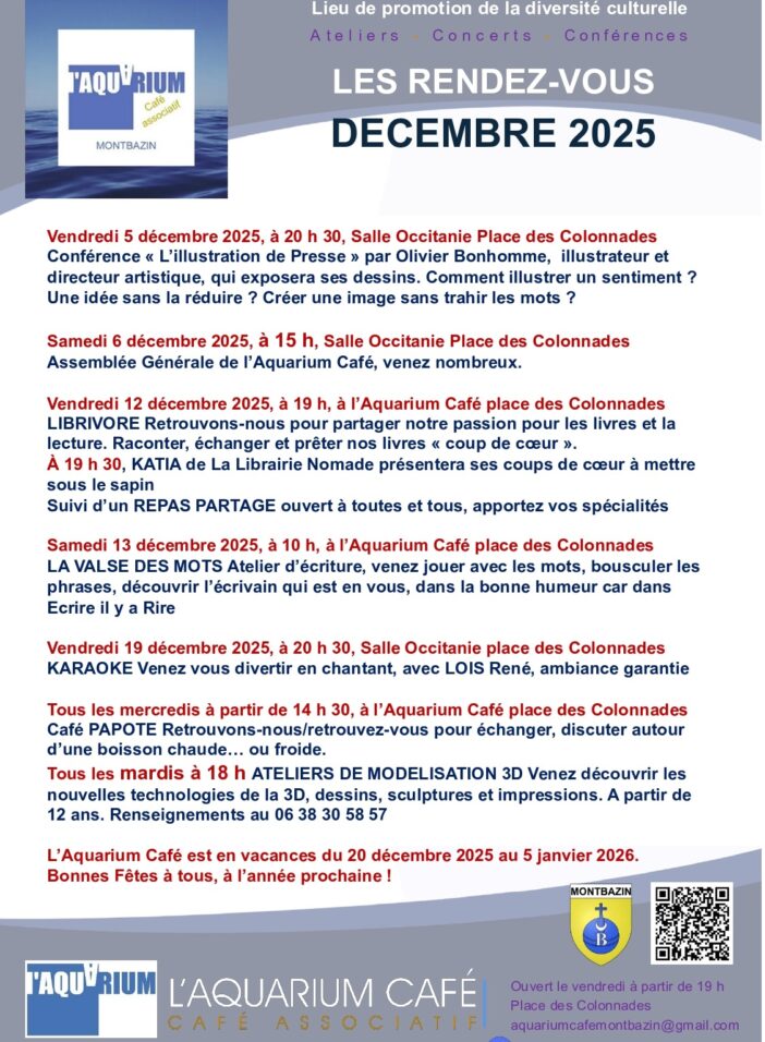 Aquarium Café – Duo chansons 17/11/2025 Programme de la semaine contre les violences faites aux femmes >